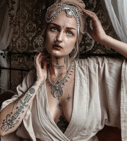 Organic Cotton Bamboo Soft Robe Handmade Wood Blocks printed