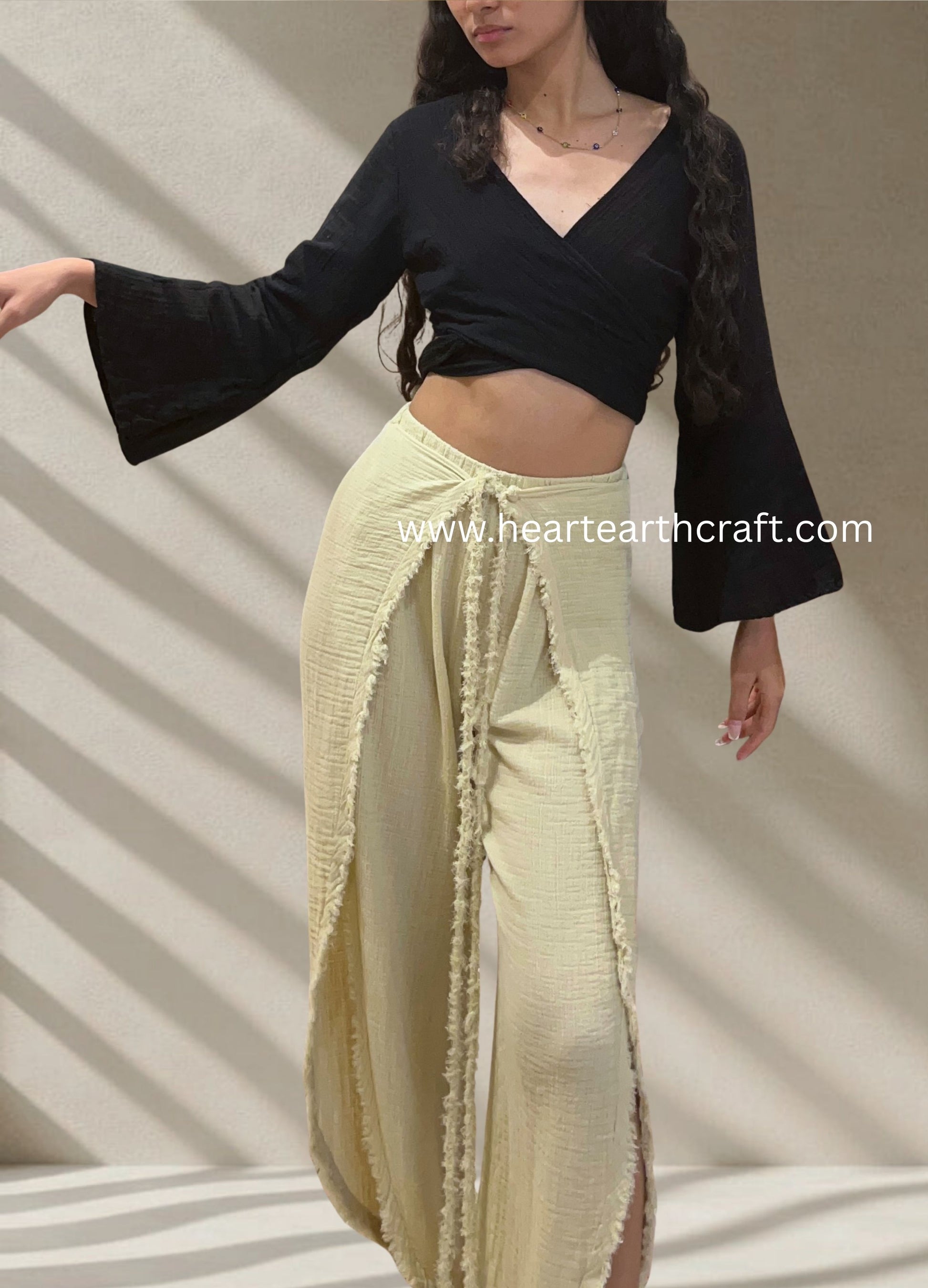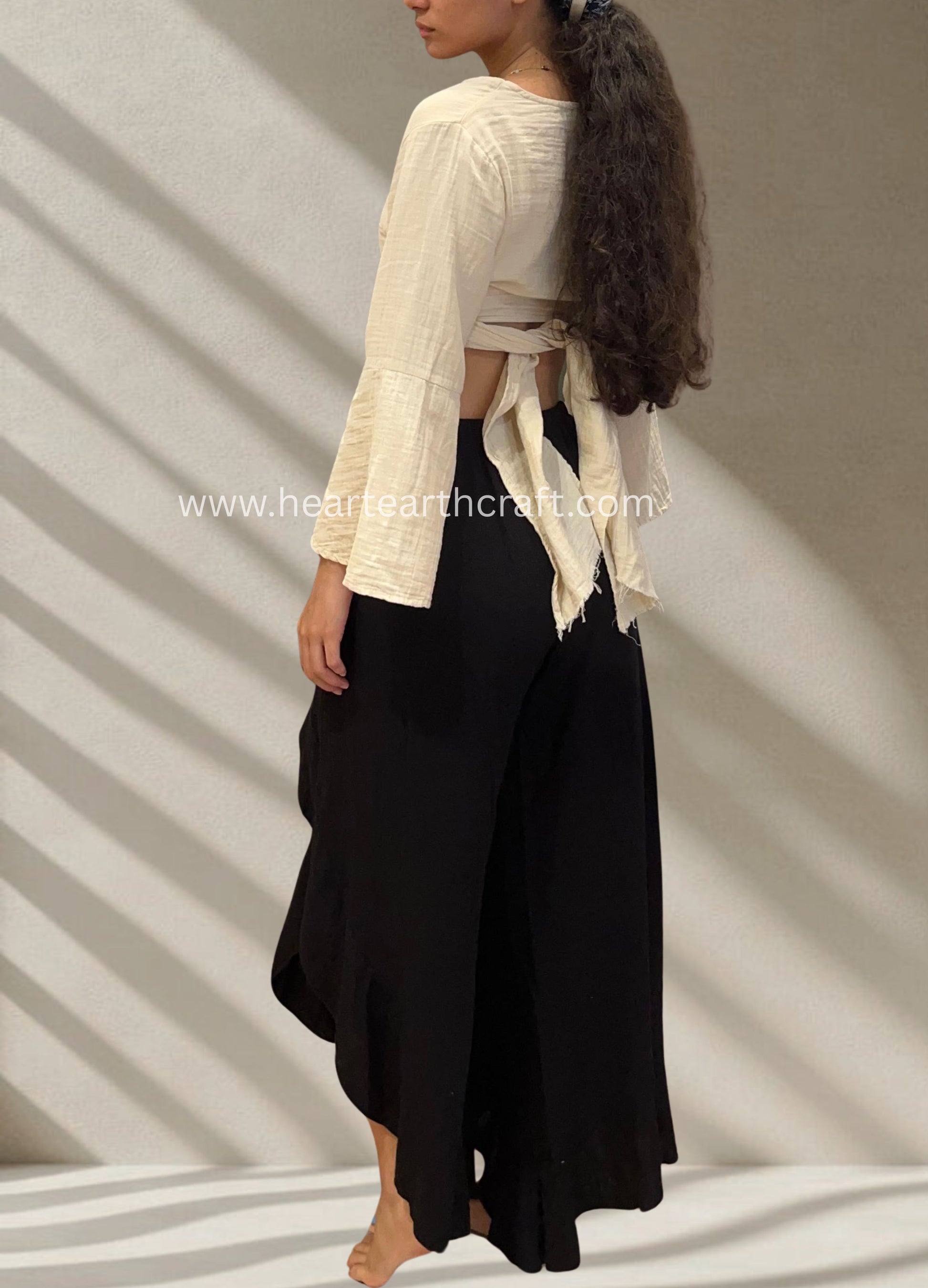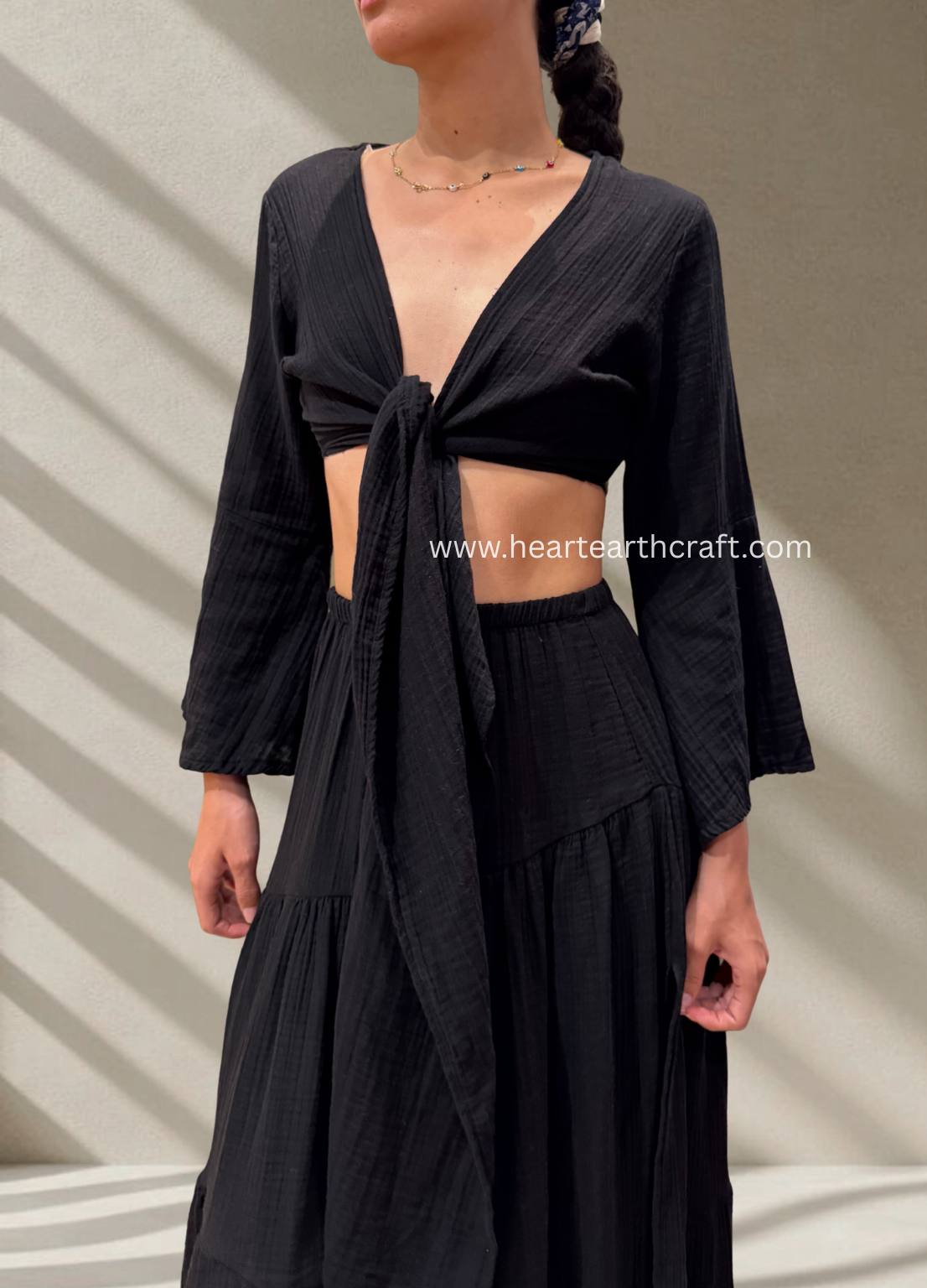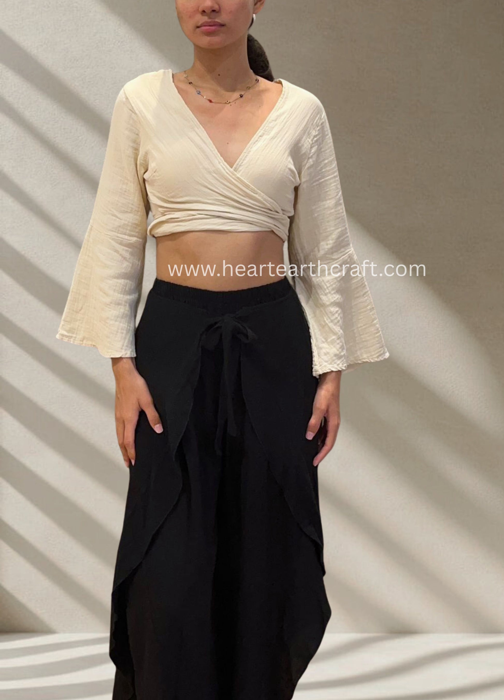 Embrace effortless bohemian charm with this long-sleeve wrap crop top, ethically handmade from raw 100% cotton. Soft, breathable, and full of natural texture, it’s designed to feel as good as it looks.
